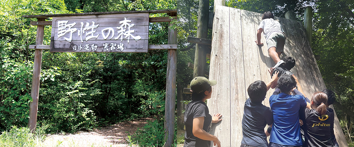 眼下には日本一を誇る琵琶湖、背後には1000m級の山々が連なる比良山系に囲まれたびわこ成蹊スポーツ大学。2023年4月に「BIWAKO Outdoor Sport Center(仮称:以下BOSC)」に設立された研修施設「野性の森」にてチームビルディング研修が実施できます。